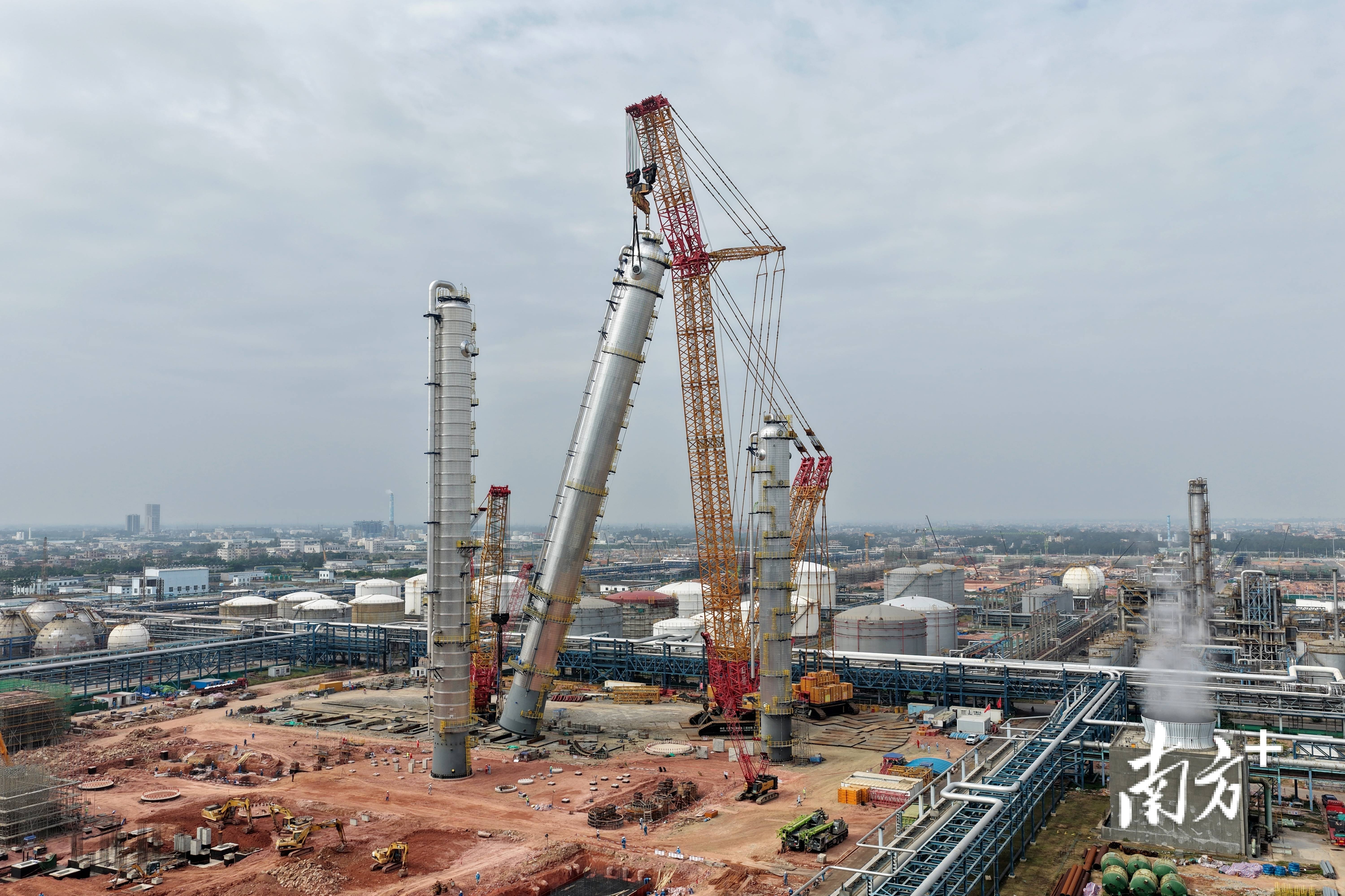 随着巨型吊车将高度110米、重1818吨的丙烯塔吊起,直至呈现直立状态,2025年11月,茂名石化升级改造项目最高的塔器设备完成吊装,该项目的4000吨履带吊化工区域任务收官。